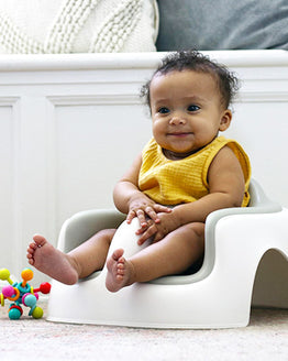 The Bumbo® Multi Seat is designed for babies and toddlers who can already sit up unaided. It comes standard with a feeding and play tray that stows in the back of the seat, and has several grow-with-me features, making it ideal for use from 6 months to 3 years. The 3-in-1 Multi Seat adapts to the changing needs of your child and can be used as a floor seat, attached to any standard adult chair for feeding time, in place of a highchair, and as a booster seat. The stable, non-slip base is made from durable, high-quality plastic and includes our signature Bumbo® comfort foam insert that can be removed and stored in the base of the seat when no longer in use (like when your little one needs a little extra room). Additionally, the seat height can be adjusted for an extra boost, the retractable chair straps stow when not in use, and the seat is lightweight, making it easy to take on the go when eating out or to your next playdate.